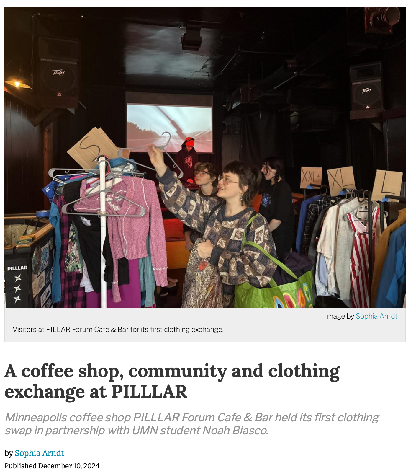 One of the reasons I love PILLLAR is that it’s a space for (sustainability and community), and it’s hard to find certain spaces to build community,” Biasco said. “Part of what we want here is just a space where people will come monthly, hopefully, see familiar faces, make new connections and build more community, and feel a part of something in Minneapolis.